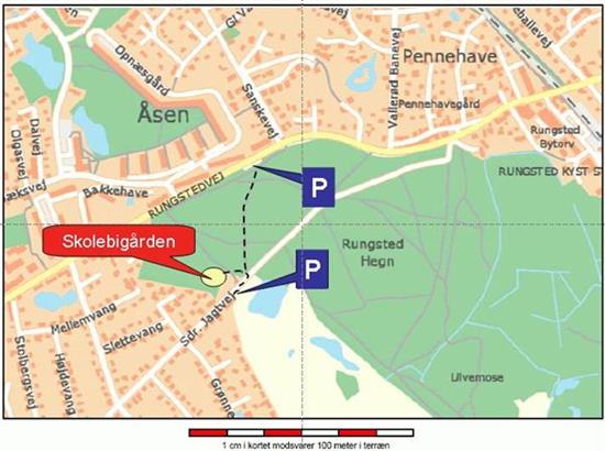 Skolebigården findes i Folehaven i Hørsholm tæt på enden af Sønder Jagtvej. Parkering er lettest på Sønder Jagtvej, og skolebigården ligger så ca. 200 meter til venstre inde i skoven. (https://maps.app.goo.gl/CNKNf9DQxVorY3Yu7)